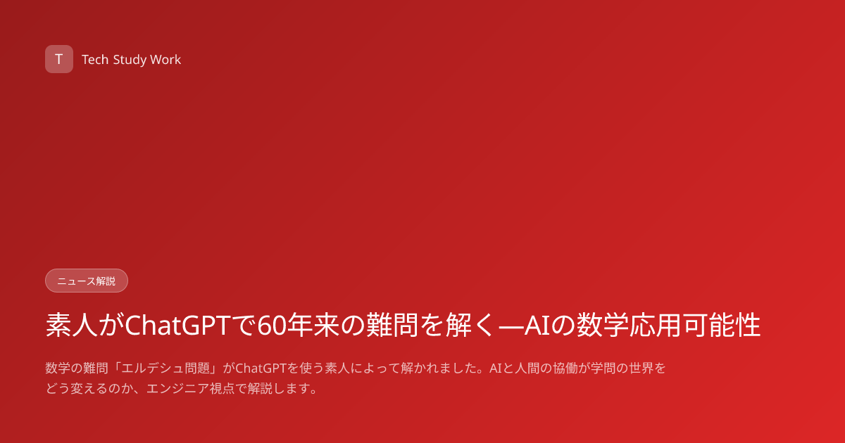 数学の難問として知られる「エルデシュ問題」が、専門家ではなくChatGPTを活用したアマチュアによって解かれました。この事例は、生成AIが単なる文章生成ツールではなく、複雑な問題解決の支援ツールとして機能することを示�ています。