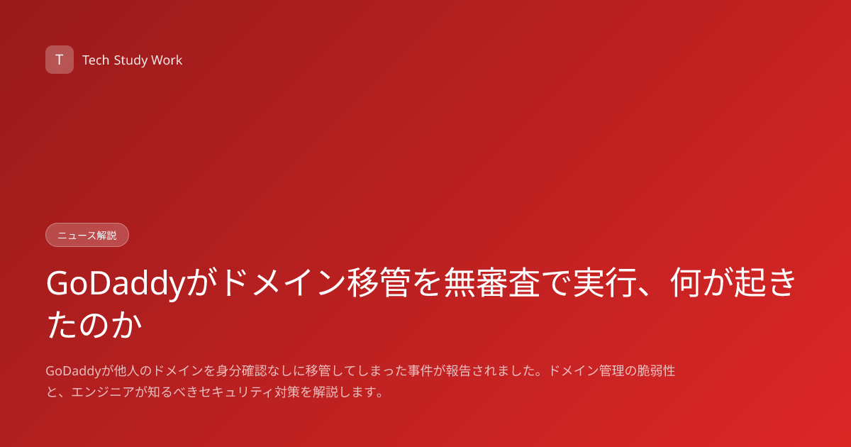 大手ドメインレジストラのGoDaddyが、顧客の身分確認書類提出なしにドメインを第三者に移管してしまうという事件が報告されました。Hacker Newsで557ポイントを獲得し、セキュリティコミュニティで大きな話題になっています。